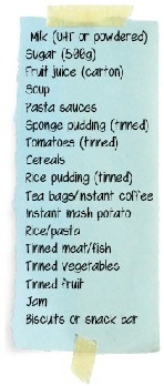 Food is donated by members of the public. Many churches in Greenwich are collecting food and have clearly labelled boxes so that items from the list (see left) can be easily dropped. Food is also received from other sources such as supermarkets. The food is sorted by volunteers and distributed from one of the Foodbank Welcome Centres.